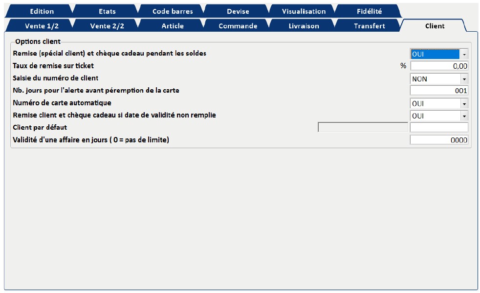 Ces paramètres sont propres à l’ordinateur et au magasin