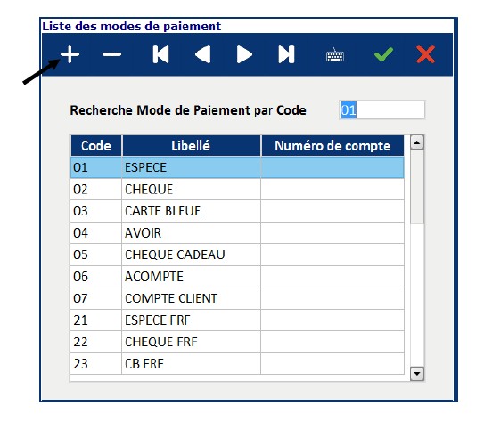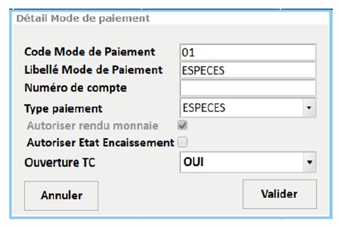 1. Sélectionner le menu Fichier – Basique – Mode de paiement