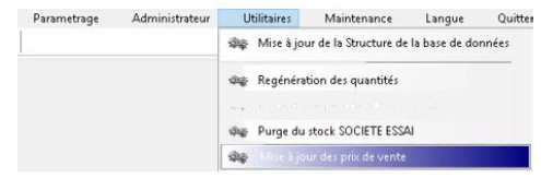 1. Aller dans le menu Outil -utilitaires – Mise à jour des prix de vente