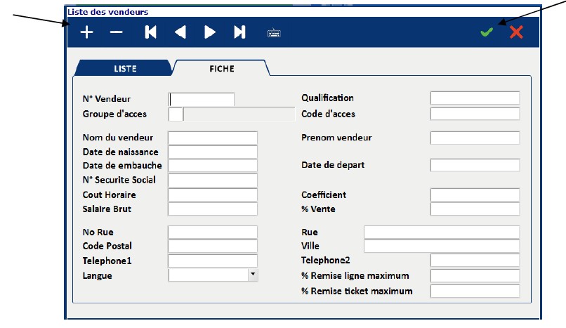Ce sont des fiches de base qui doivent être remplies impérativement avant de commencer l’exploitation de CashOffice.
