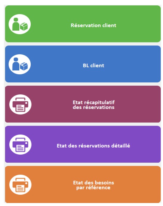 1. Cliquer sur l’état voulu dans la section « Réservation clients »