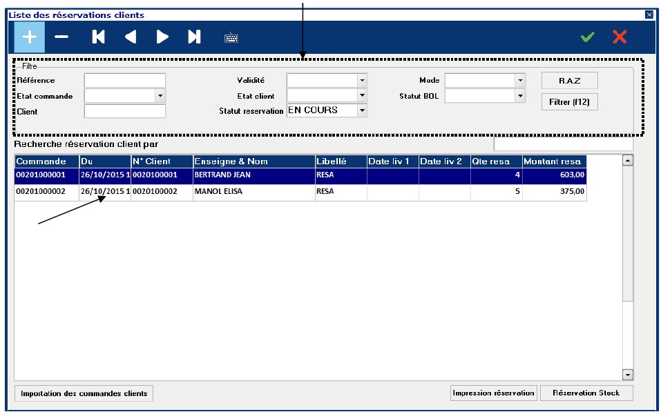 Par le client [D2], ainsi que le prix [D4]Si le stock est suffisant, saisir les quantités réservées.