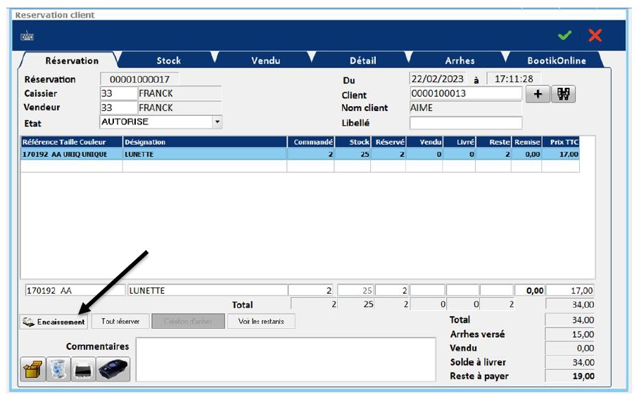 7. Valider la réservation par le V vert de validation (ou la touche F12).