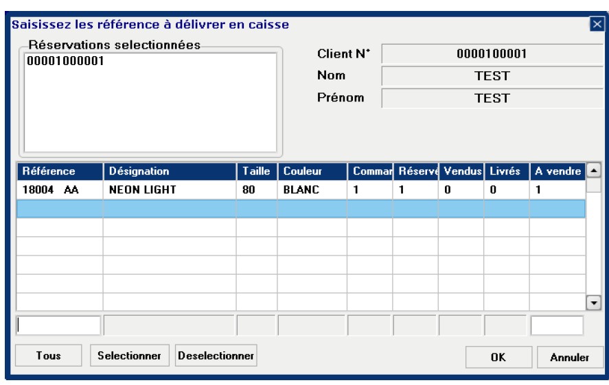 3. L’écran d’encaissement apparaît : les articles disponibles,